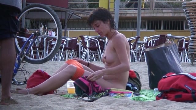 Beach spread on a nude beach of a Milf